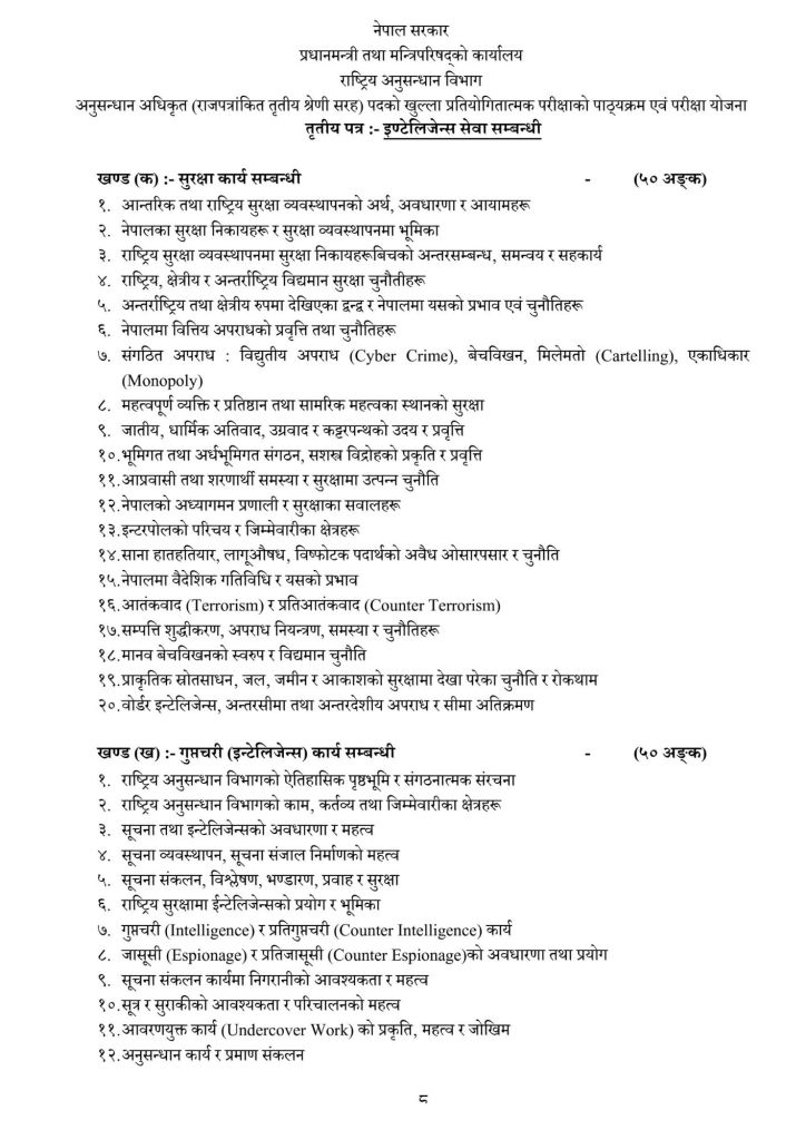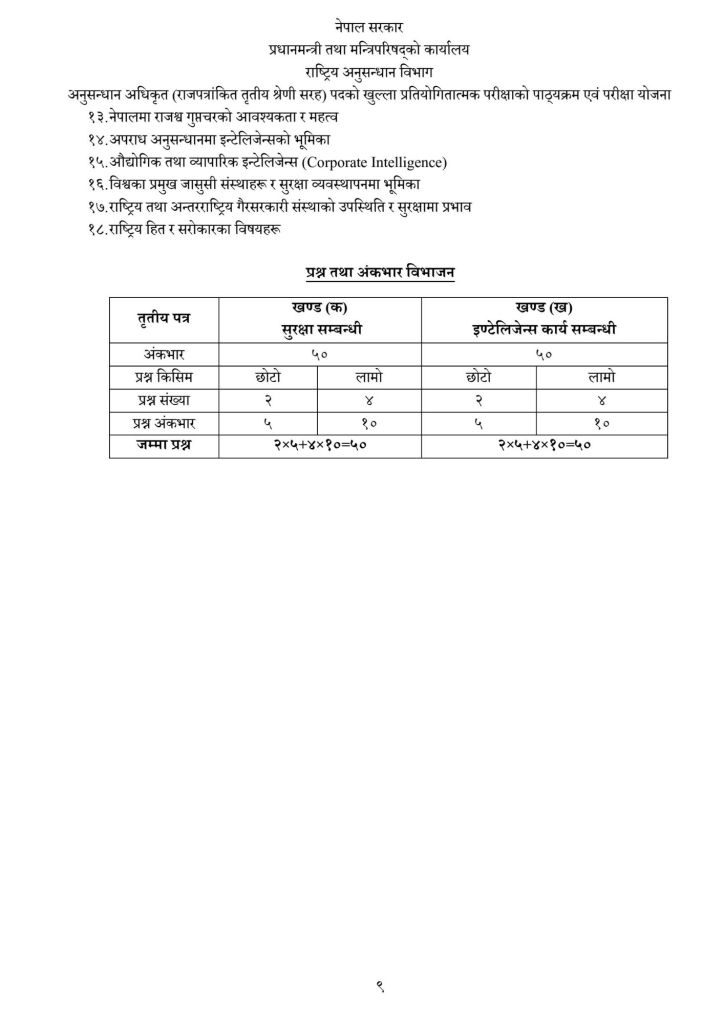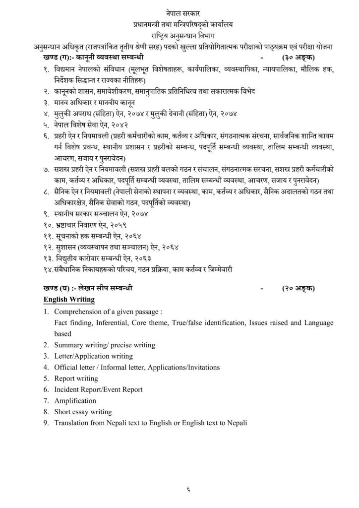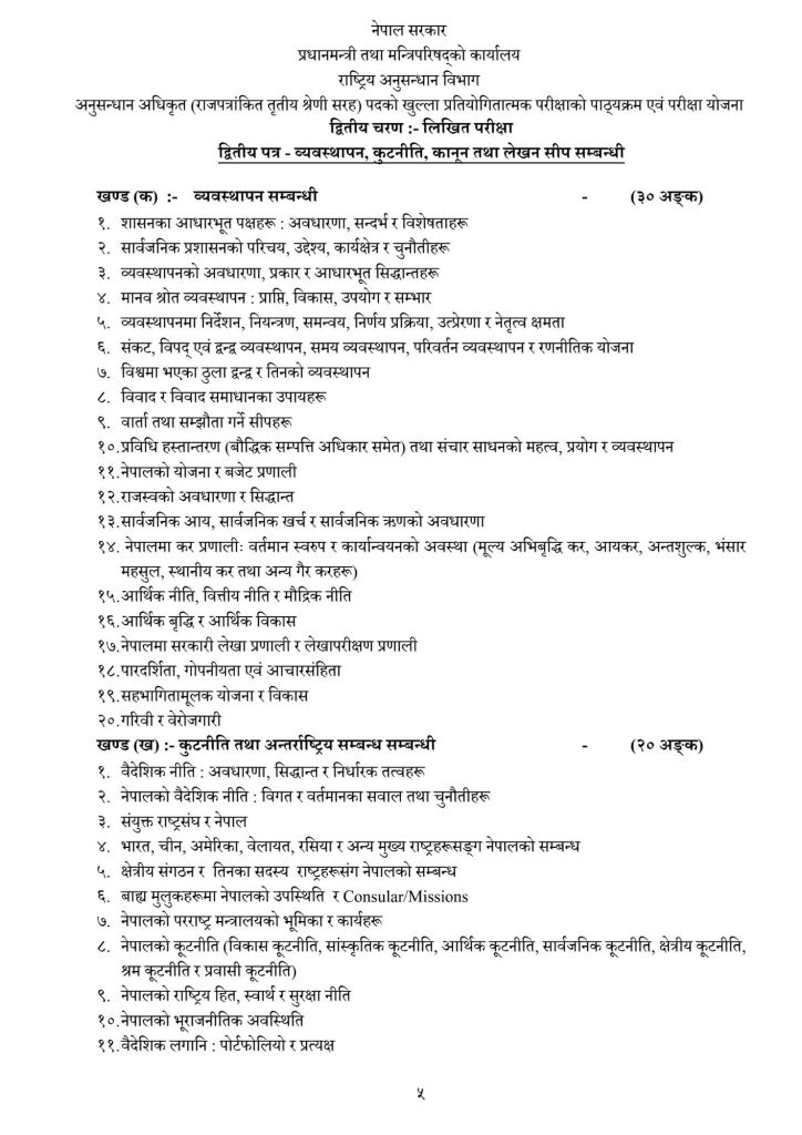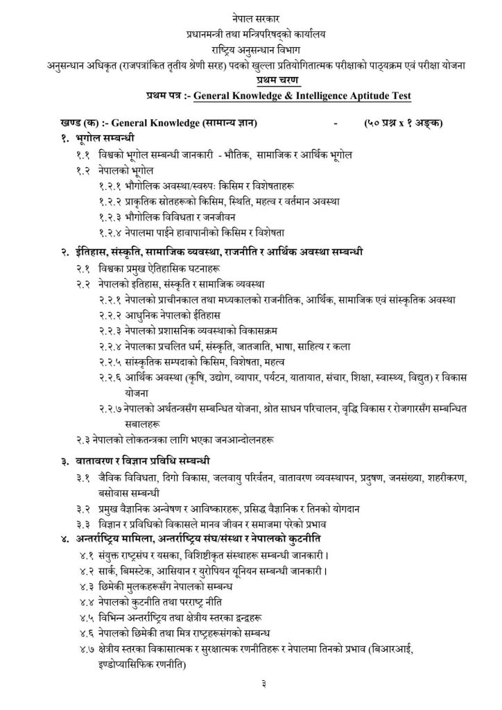 अनुसन्धान अधिकृत (राजपत्रांकित तृतीय श्रेणी सरह) पदको खुल्ला प्रतियोगितात्मक परीक्षाको नयाँ पाठ्यक्रम