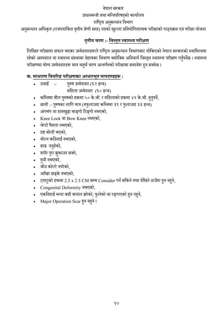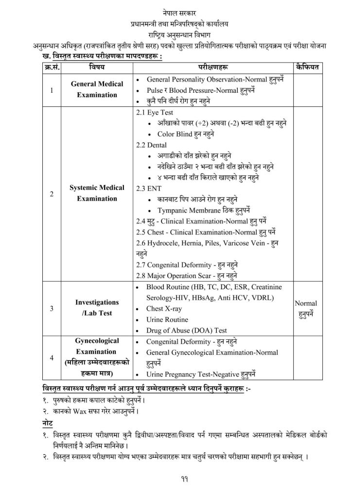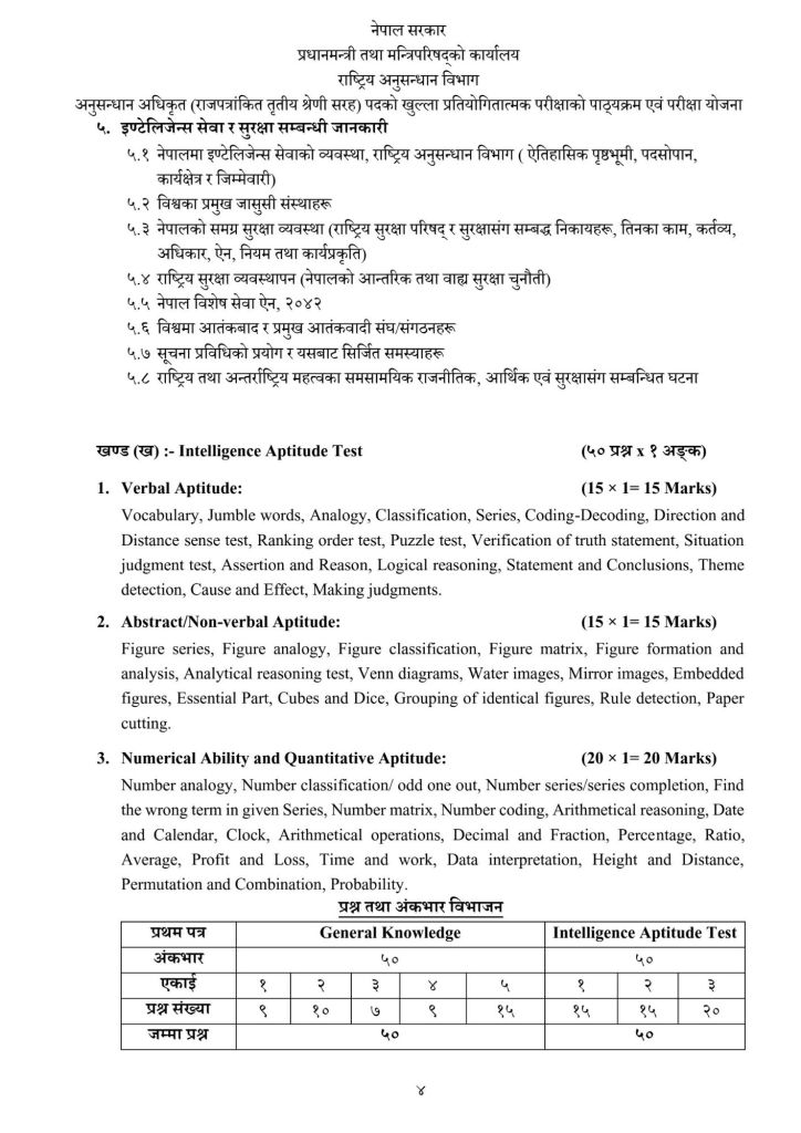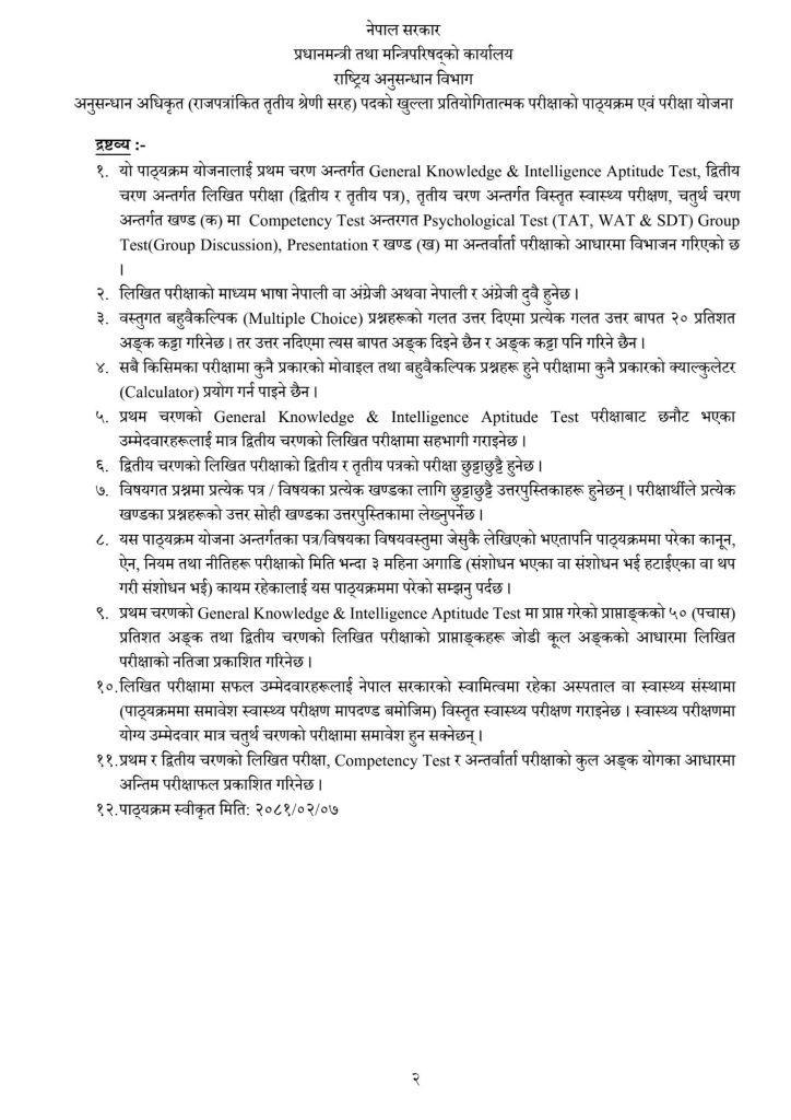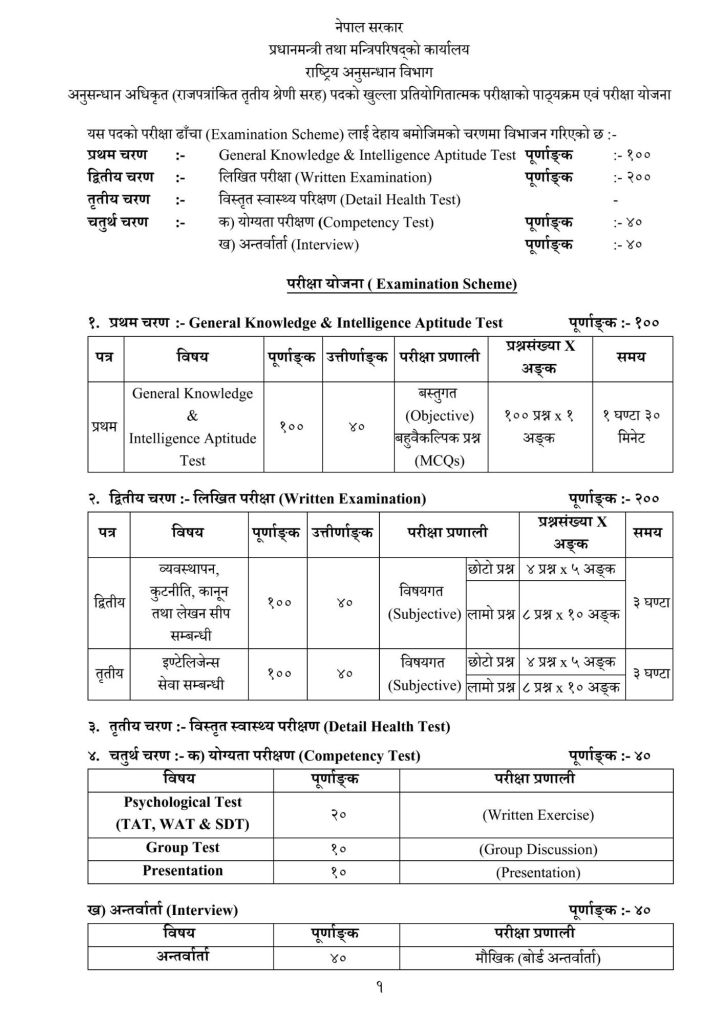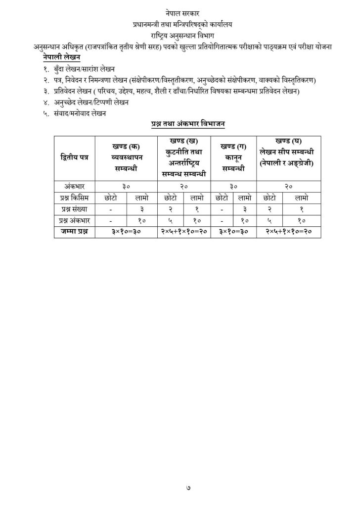 अनुसन्धान अधिकृत (राजपत्रांकित तृतीय श्रेणी सरह) पदको खुल्ला प्रतियोगितात्मक परीक्षाको नयाँ पाठ्यक्रम